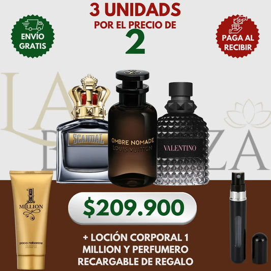 Kit 3 Perfumes Scandal Men, One Million, Oud for greatness 100ml
